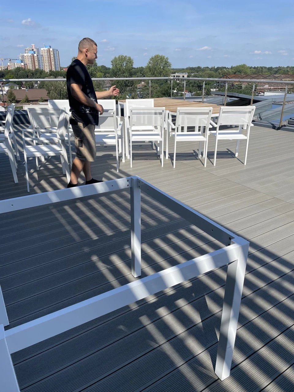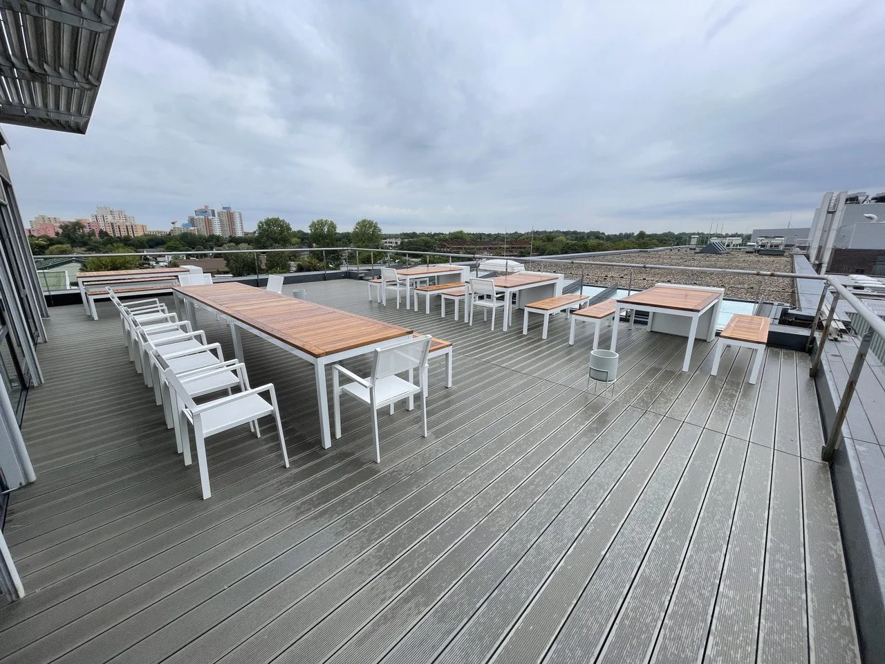Popis: Během šesti týdnů byly z jedné ruky provedeny následující práce: Byla odstraněna stará kuchyně (60 m²) a dlažba. Střešní terasa (96 m²) byla zbourána. Na podlahu komerční jídelny byla položena tepelná izolace, aby se zabránilo úniku tepla z kotelny. Bylo položeno 60 m² potěru, připraveny stěny a položeno 240 m² dlažby. Byla provedena nová elektroinstalace podle nového plánu kuchyně. Byla dokončena vnitřní výstavba a provedeny malířské práce. Bylo vymalováno 640 m² otočné plochy, 143 m² starého parketového podlahy bylo zapečetěno a nalakováno, nová terasa o rozloze 96 m² byla kompletně přestavěna a byl namontován nový nábytek.