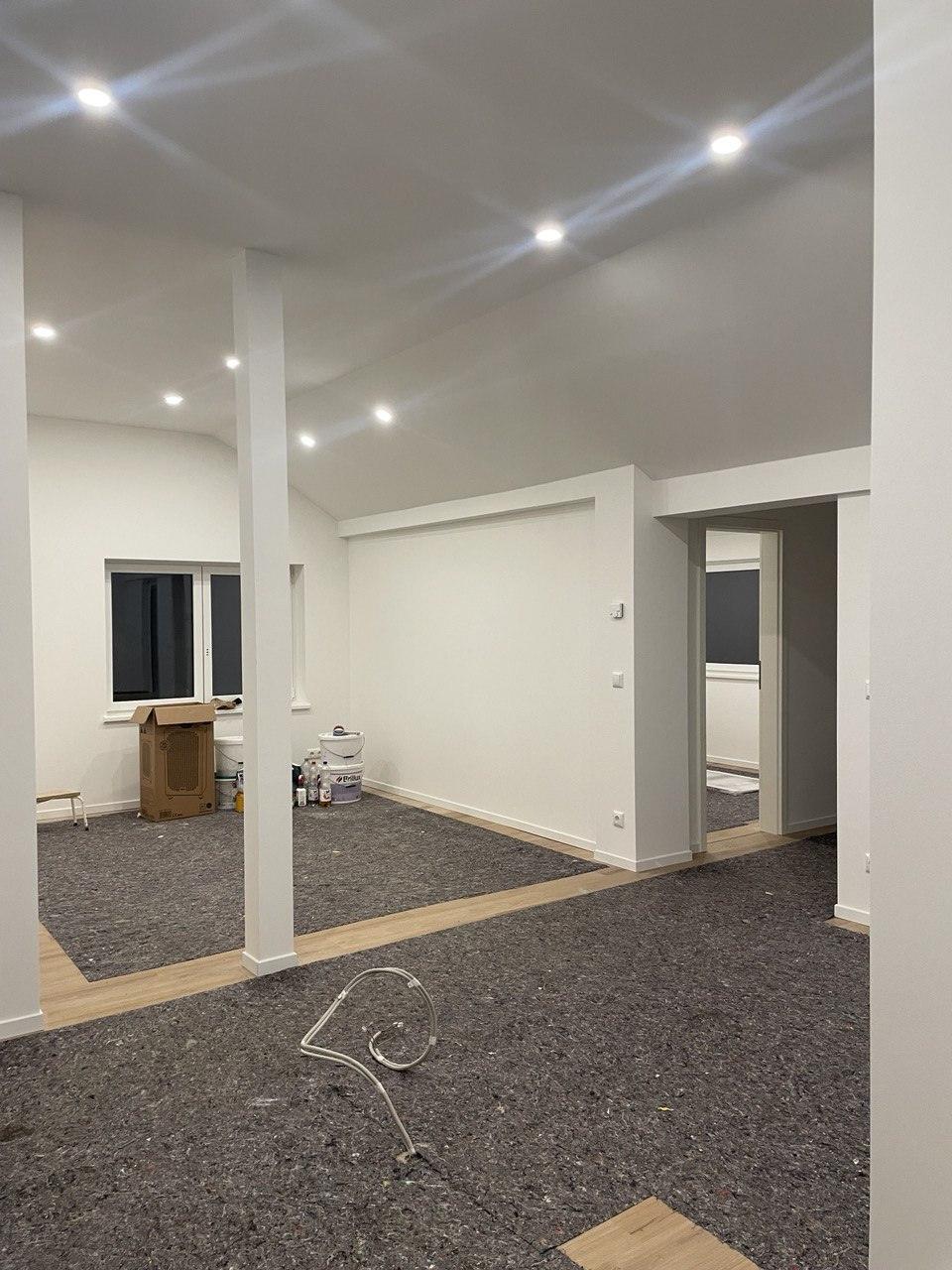 Leistungen: Demolice, základy, hrubá stavba, střecha, fasáda, izolace, elektroinstalace, topenářské a instalatérské práce, podlahové vytápění a tepelné čerpadlo, sádrokartonářské a malířské práce, vnitřní vybavení, obkladačské práce, pokládání podlah.